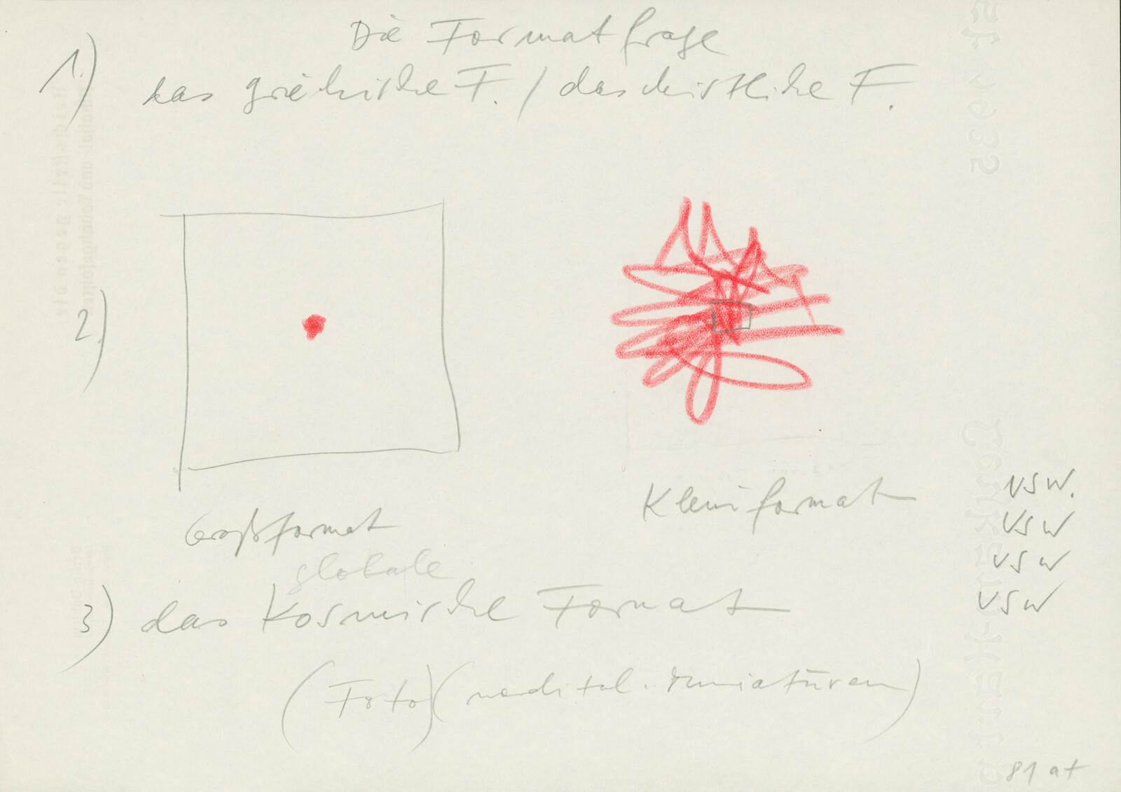 Die Formatfrage: das griechische Format, das christliche Format, modernes Postskriptum 1981 dreiteilige Serie: je 62 x 43 cm Blei- und Buntstift, Meraviglia
