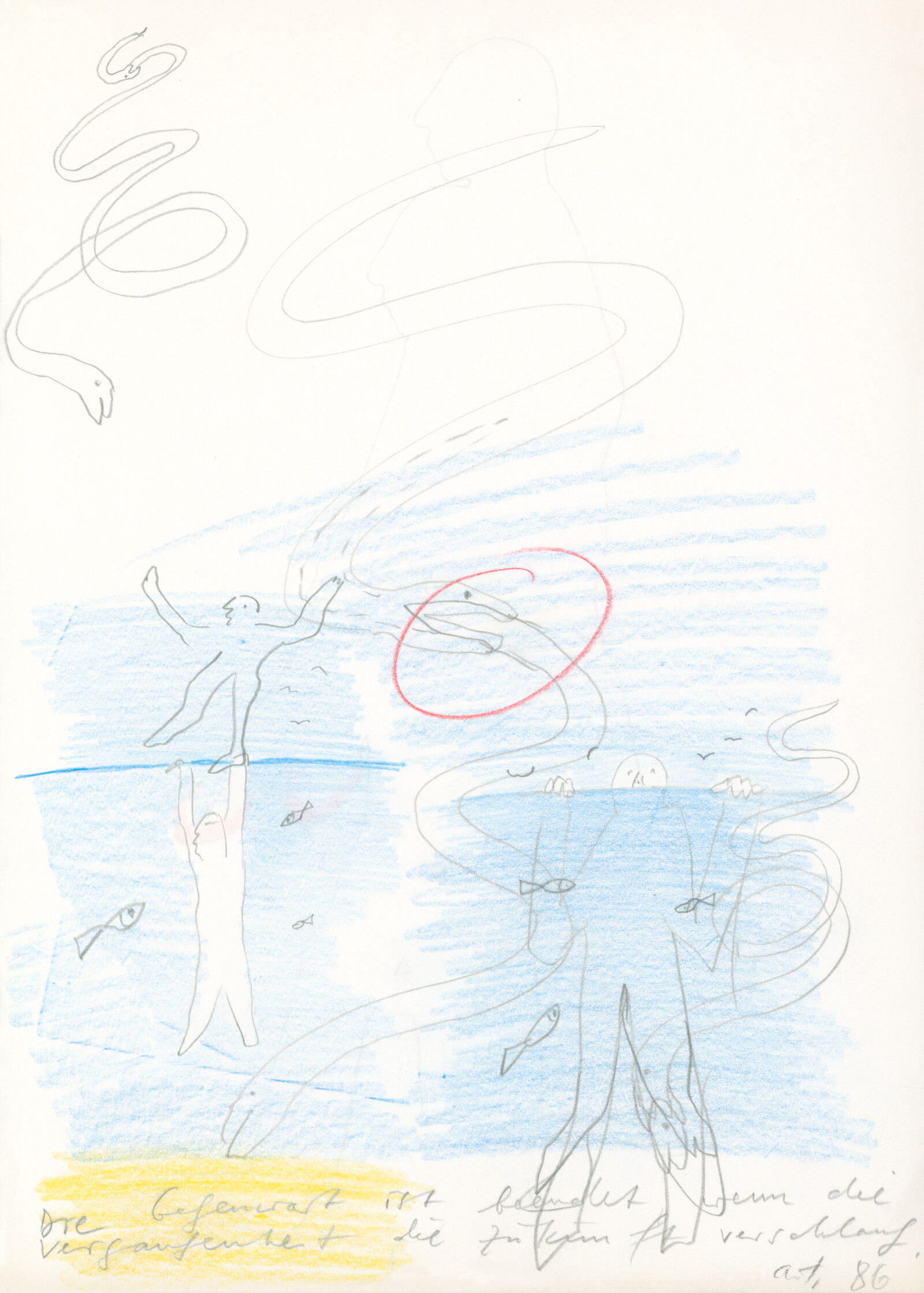 Über Zeit und Größe vor dem baldigen Tod 1986 42 x 29,7 cm Blei- und Buntstift