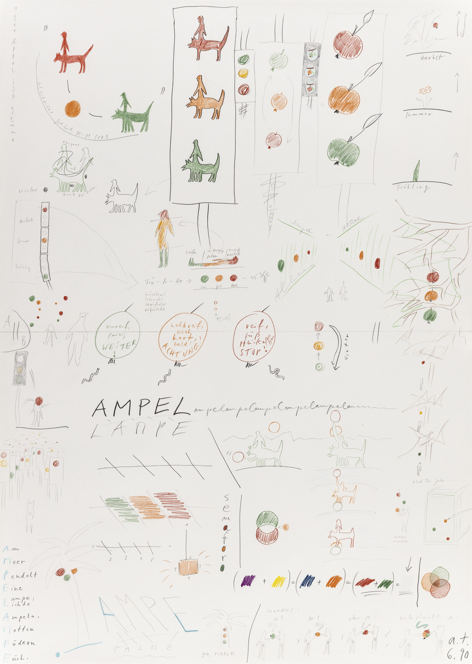 IRRDISCH (VOM LEICHTEN ((als Verwickeltem)) – VOM EINFACHEN ((als Schwerem))) 1990 86 x 61 cm Blei- und Buntstift